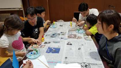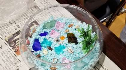 先ほど拾った貝や、用意されているパーツを使って素敵な置物を作りました。