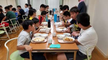 お風呂から戻り、7時から予定より遅めの夕食を食べました。