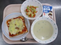 4月22日 ミートソーススパゲティ 豆入りサラダ ニューサマーオレンジ 牛乳