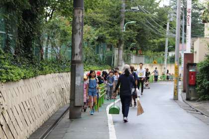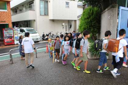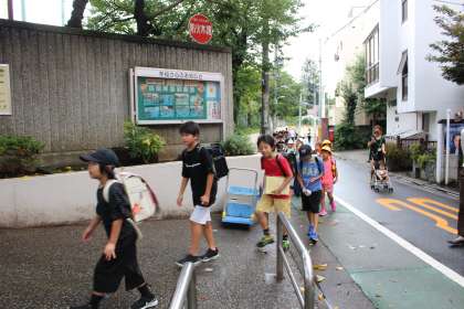 長期休業日明けの4月、8月、1月に集団登校を行っています。