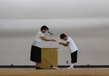 また、平和記念標語で優秀賞をとった児童と、目黒区水泳大会で大会記録を出した児童の表彰も行いました。
