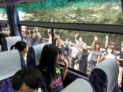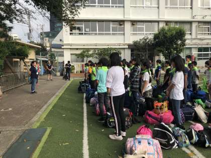出発式をして、学校を出発しました。