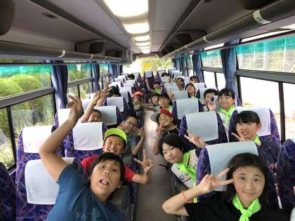 興津自然宿泊体験教室その16 公開日 2019/09/03 更新日 2019/09/03 6年 シーカヤックに大盛り上がりでした。 着替えをしてバスに乗り、これから学園に向かいます。 たくさん身体を動かし、暑さもあり、少し疲れが見えてきましたが、みんな元気です。 いいね(0)