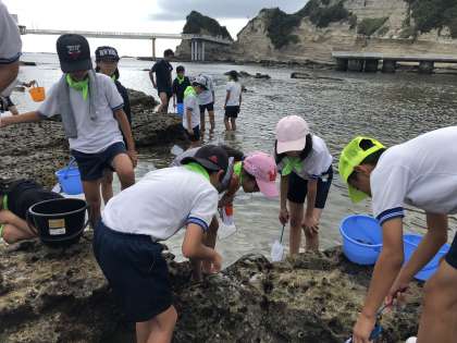6年 興津自然宿泊体験教室その37 公開日 2019/09/04 更新日 2019/09/04 6年 女の子たちも夢中です! 男の子たちもみんなで協力して大きなカニを捕まえようと頑張っています。 いいね(0)