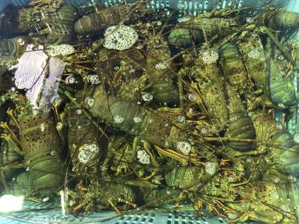 次は、今日取れた伊勢海老やお魚をたくさん見せてもらいました。