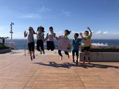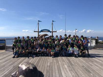 海ほたるでトイレ休憩のあと、学年みんなで写真を撮りました。
