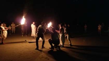 夕方降っていた雨がやみ、星空の下キャンプファイヤーをしました。