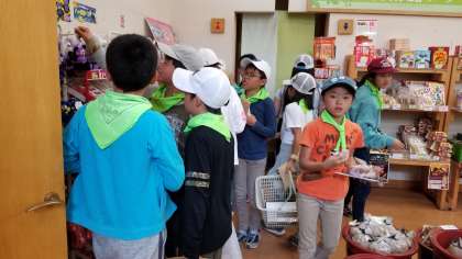 今日、ジャガイモ掘りができなかったので、ジャガイモを買っている子がいました。