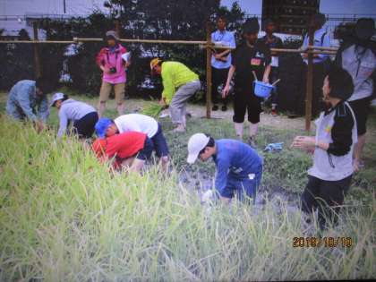 10月8日(火)おおはしの杜の田圃で稲刈り。天候不順と「すずめの襲撃」により豊作とはいきませんでしたが、残ってくれた稲を子供たちはザクっと刈り取りました。