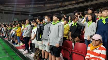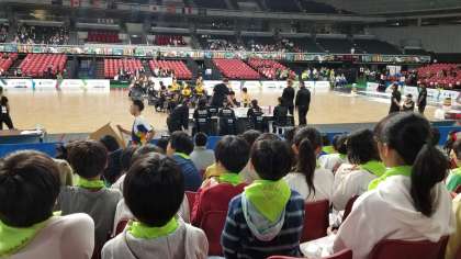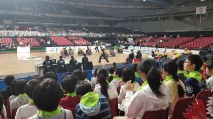 5・6年生が、国立競技場にウィルチェアーラグビーを観に来ています。