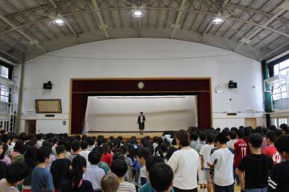 校長から、「笑顔あふれる学校」にするために頑張ってほしいことについて話がありました。