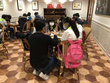 2グループは、旅行会社へ3グループはレストランへと入っていきました。
