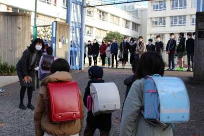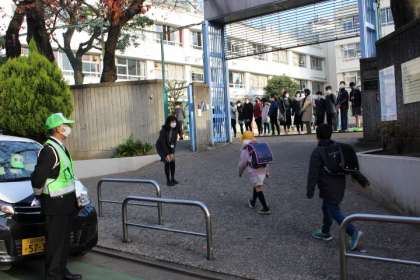 6年生と中学1年生と一緒に校門で挨拶をしました。