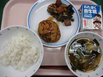 12月18日 麦ごはん 豆腐の真砂揚げ 五目豆 みそ汁 牛乳 公開日 2020/12/18 更新日 2020/12/18 給食 12/18 ≪献立≫ ●麦ごはん ●豆腐の真砂揚げ ●五目豆 ●みそ汁 ●牛乳 ≪使用食材・産地≫ たら(アメリカ)、たまご(栃木)、ひじき(大分)、わかめ(徳島)、鶏ひき肉(山梨)、にんじん(埼玉)、長ねぎ(千葉)、ごぼう(青森)、いんげん(長崎)、じゃがいも(北海道)、玉ねぎ(北海道) いいね(0)