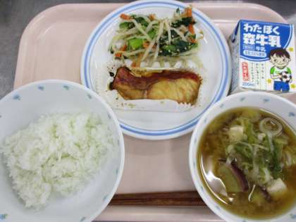 1月19日 ごはん ハマダイの幽庵焼き ごま和え みそ汁 牛乳