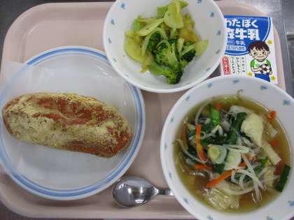 1月29日 きなこ揚げパン ワンタンスープ ポテトとブロッコリーのソテー 牛乳