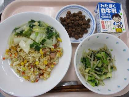 2月25日 あんかけチャーハン 野菜のごま醤油和え ココア豆 牛乳