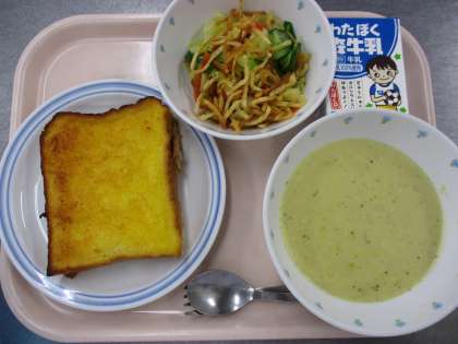 ・オレンジフレンチトーストはコーンポタージュと合わせて食べるとおいしかったです。おいしい給食を毎日ありがとうございます。