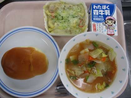 3月17日 バターロールパン マカロニグラタン ミネストローネ 牛乳 公開日 2021/03/18 更新日 2021/03/18 給食 3/17 ≪献立≫ ●バターロールパン ●マカロニグラタン ●ミネストローネ ●牛乳 ≪使用食材・産地≫ 玉ねぎ(北海道)、にんじん(新潟)、ブロッコリー(愛知)、パセリ(香川)、にんにく(青森)、じゃがいも(北海道)、キャベツ(愛知)、ピーマン(宮崎)、豚肉(熊本) いいね(0)