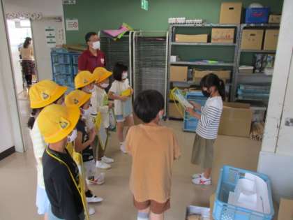今日は、学校探検をしました。2年生に、学校のいろいろな場所のひみつや使い方をクイズで楽しく教えてもらいました。それぞれの場所では、シールを貼ってもらいました。2年生のお話を真剣に聞いている姿が、素敵でした。次回が楽しみですね!