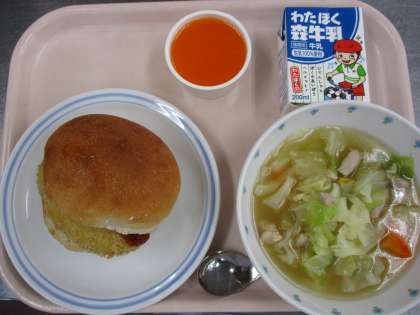 5月26日 コロッケバーガー ABC野菜スープ キャロットゼリー 牛乳
