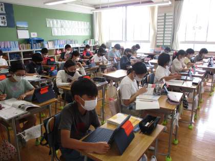 6年生は日ごろ持ち帰っているタブレットを活用して、