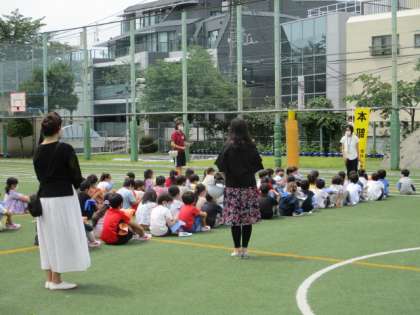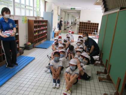 1年生だけは少しでも経験を積ませてあげたいので、校庭に避難する練習をしました。「お・か・し・も」を守って、上手に避難することができました。