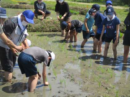 5年生は、大橋ジャンクションにある「おおはし里の杜」に田植え体験に行きました。