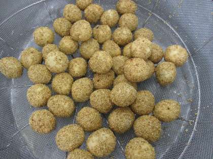 中華のごま団子を作りました。朝早くあんことだんごの生地をつくっておき、ひとつずつ丁寧に丸めてごまをまぶして揚げました。