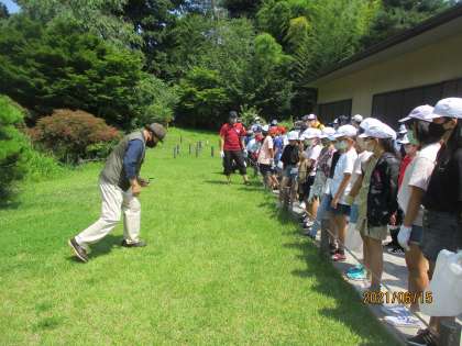 地域の森田さんのお話を聞き、抜いてよい草と抜いてはいけない草について教えてもらいました。
