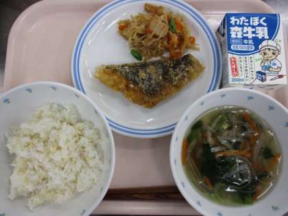 6月18日 玄米入りごはん ほっけのカレー揚げ 切干大根の炒め煮 沢煮椀 牛乳 公開日 2021/06/18 更新日 2021/06/18 給食 6/18 ≪献立≫ ●玄米入りごはん ●ほっけのカレー揚げ ●切干大根の炒め煮 ●沢煮椀 ●牛乳 ≪使用食材・産地≫ しまほっけ(ロシア)、しょうが(高知)、にんじん(埼玉)、いんげん(茨城)、ごぼう(青森)、長ねぎ(千葉)、小松菜(東京)、切干大根(宮崎)、豚肉(茨城) いいね(0)