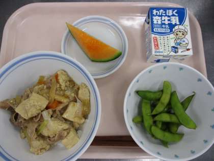 6月19日 肉豆腐丼 枝豆 メロン 牛乳