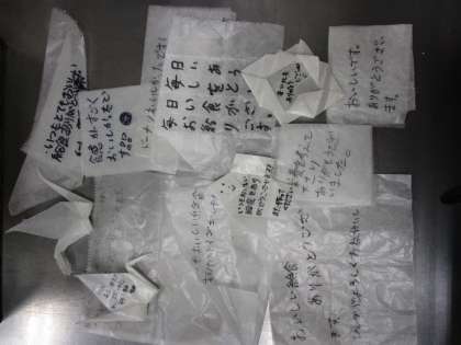 今日は5年生、6年生がドーナツの包み紙にメッセージを書いてくれました。