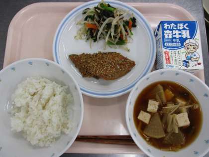 今月は4年生と5年生のリクエスト給食があります。今日は5年生のリクエストのおかずで「パリパリチキン」を出しました。5年生だけではなく他の学年も喜んでいました。