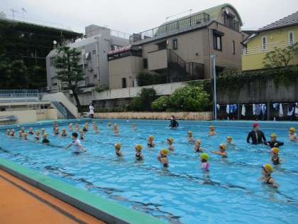 今日は2回目の水泳の学習です。前回は雨が降ってしまい、プールに入れませんでしたが、今日は入ることができました。先生の笛の合図で、水の中に入ると冷たい水に体がブルっと震えた様子でした。それでも、叫びたい気持ちをぐっと堪え、アクアビクスを踊ったり、プールの中を歩いたりするなど、元気に水泳学習を進めることができました。楽しく活動を進めると、少しずつ天気が良くなり、だんだん気持ちいいプールになってきました。