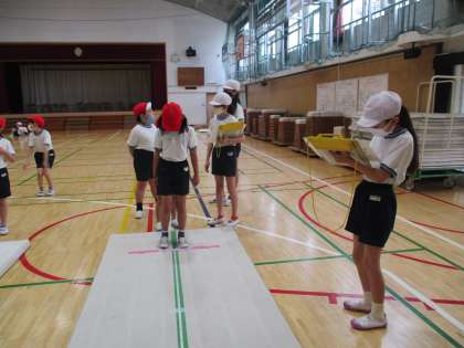 2年生のスポーツテストの計測を、5年生がお手伝いをしました。