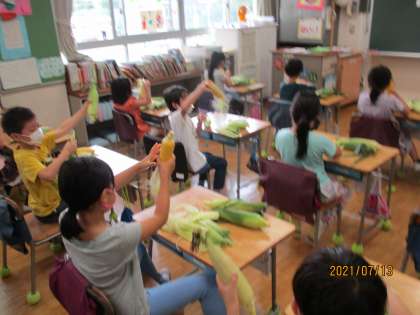 みんながきれいにむいたとうもろこしは、給食の時間においしくいただきました。