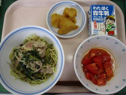 7月15日 しょうゆラーメン トマトの中華風サラダ みそポテト 牛乳