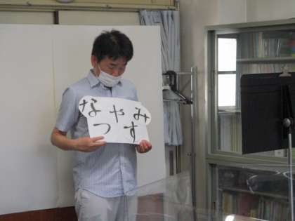 夏休み前の朝会です。夏休みの生活について、生活指導の先生からお話がありました。