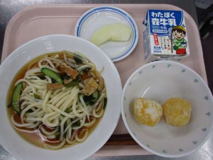 9月1日 冷やしこぎつねうどん じゃがまる りんご 牛乳