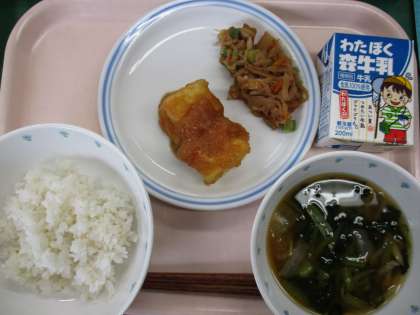 9月3日 麦ごはん 揚げだし豆腐 切干大根の炒め煮 小松菜のみそ汁 牛乳