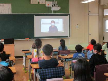 そこで今回は、子供たちの疑問を事前にまとめ、菅刈住区センターの副会長の九頭龍さんへインタビューをした動画を流す事にしました。よく通る場所だけど意外と知らない事が多かったようでした。