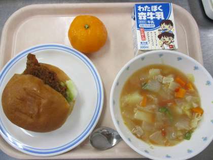 9月14日 フィッシュバーガー ミネストローネ 冷凍みかん 牛乳