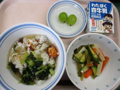 9月27日 鯛茶漬け 茎わかめと大根のサラダ ぶどう 牛乳