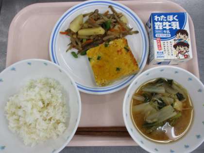 9月30日 玄米ごはん ぎせい豆腐 じゃがいもの金平 大根のみそ汁 牛乳