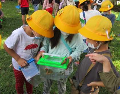かなへび、カマキリなど、たくさんの生き物を捕まえ、観察できました。
