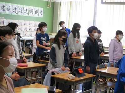音楽朝会 公開日 2021/10/21 更新日 2021/10/21 専科 今日の音楽朝会では、各学級にて動画を観ながら発声練習をし、学芸会で歌う予定である「幕をあける歌」の練習をしました。途中で手拍子の入る楽しい曲です。 皆明るい笑顔、優しい声で歌えました。 いいね(0)