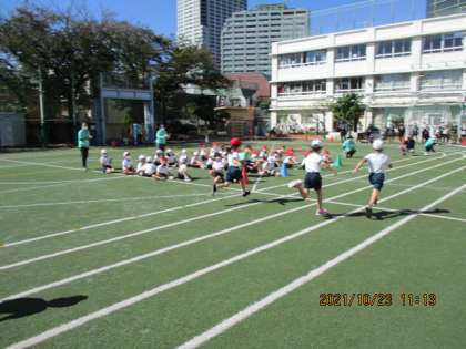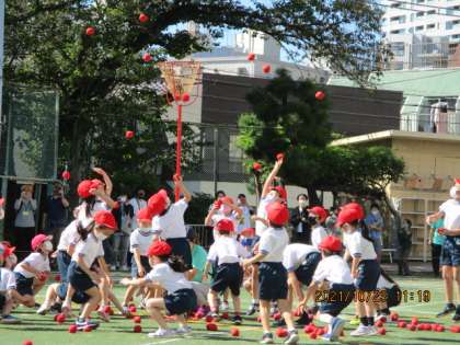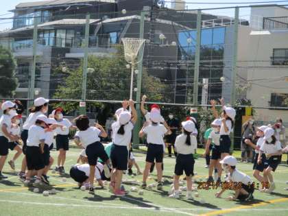 爽やかな秋晴れの中、スポーツデイがありました。1年生は、かけっことチェッコリ玉入れをしました。かけっこでは、元気な返事と力強い走りに、成長を感じました。チェッコリ玉入れでは、音楽に合わせてダンスをして、笛の合図をよく聞いて玉入れをしました。かわいいダンスがとってもすてきでした。