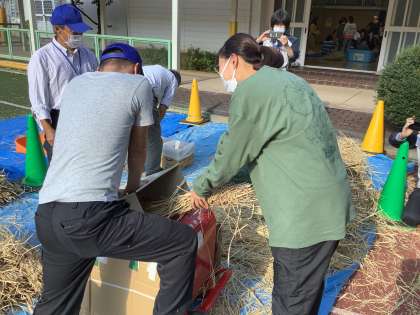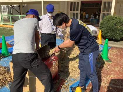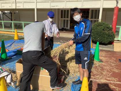 先生たちも体験しました!カラカラと音を立てて実が取れていく様子が楽しいですね!