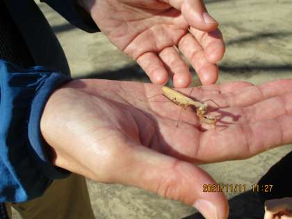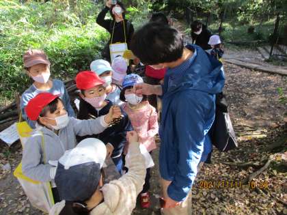 解説員の方にたくさん質問したり、五感を通して秋を感じたりと、充実した時間があっという間に過ぎました。切り株でコカマキリを見付けると、歓声があがりました。明日は1年生が秋探しに行きます。